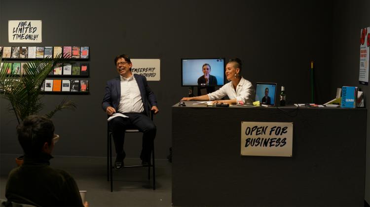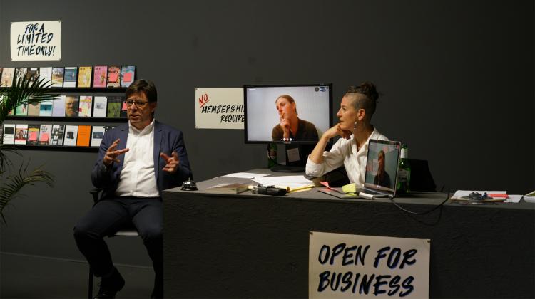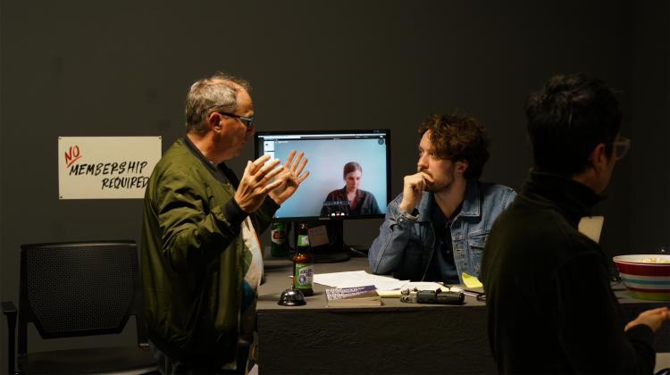 Following the discussion, a reception for the exhibition Video Rental Store took place, when regular business operations continued - artist videos could have been previewed in store, rented, returned and payed for.