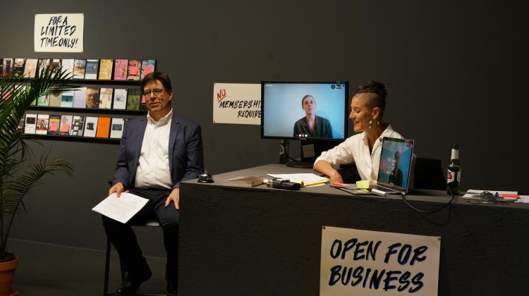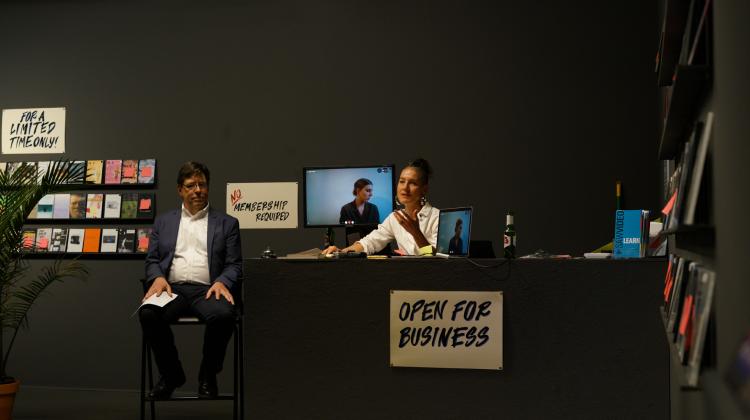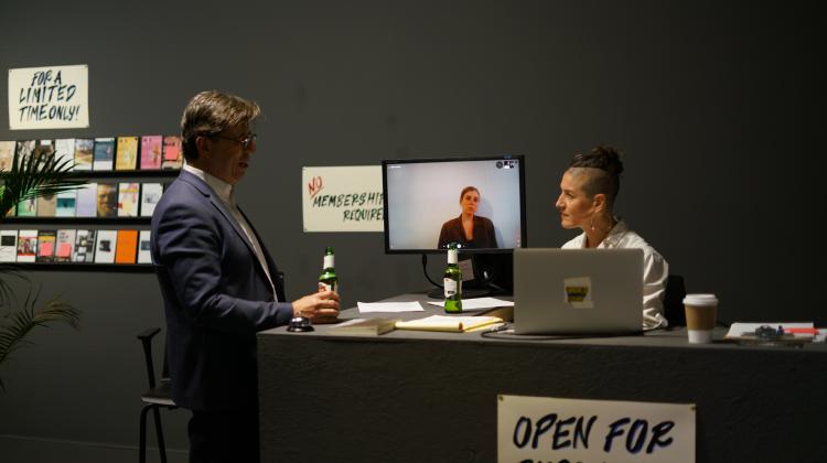 Following the discussion, a reception for the exhibition Video Rental Store took place, when regular business operations continued - artist videos could have been previewed in store, rented, returned and payed for.